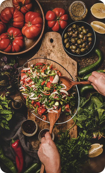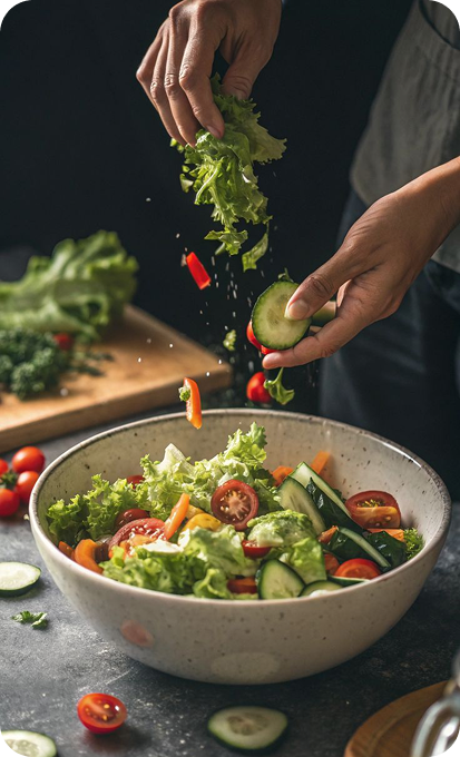 كل طبق نُقدّمه يحمل توقيعنا الخاص في التقديم والنكهة — ضيافة صحية بلمسة فاخرة تبهج العين قبل المذاق.