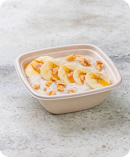 Oat milk pudding with banana and nuts