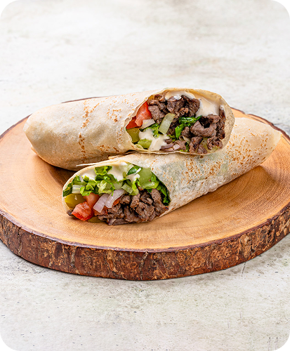 Beef shawarma saj sandwich